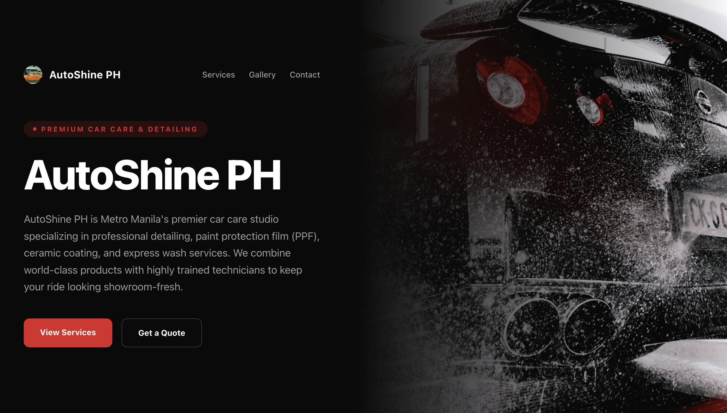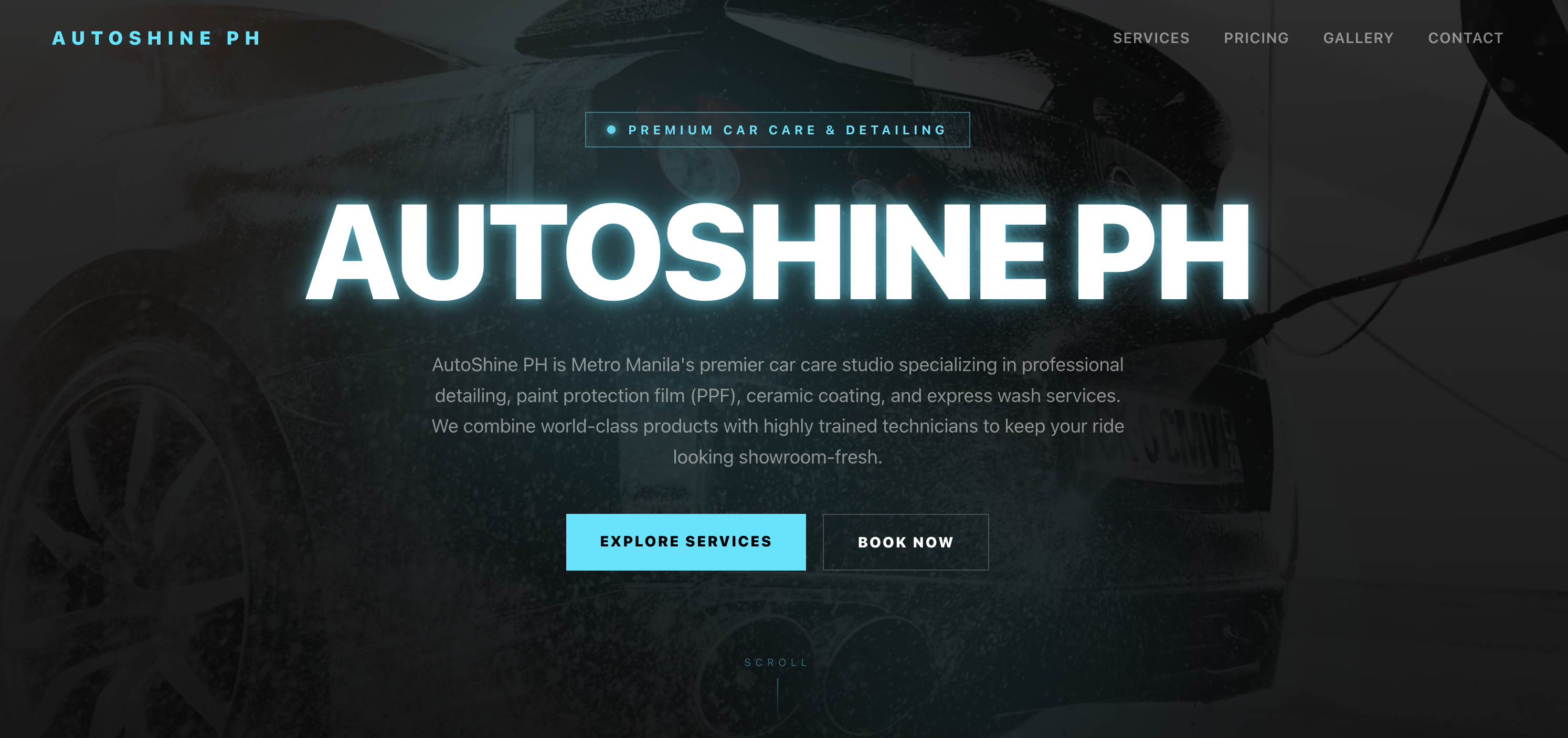 Aggressive, dark-themed service template with neon accents, glitch-style headings, tabbed pricing, gallery, and video.